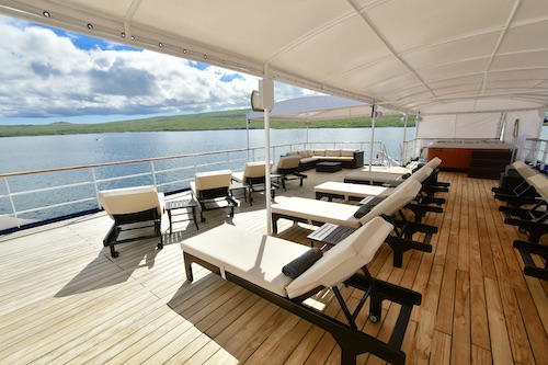 Pendant votre croisière dans les Galapagos à bord du Celebrity Xperience, vous pourrez profiter de la bibliothèque moderne et cosy du navire ou vous détendre dans les bains à remous et sur les transats à votre disposition sur le pont soleil.